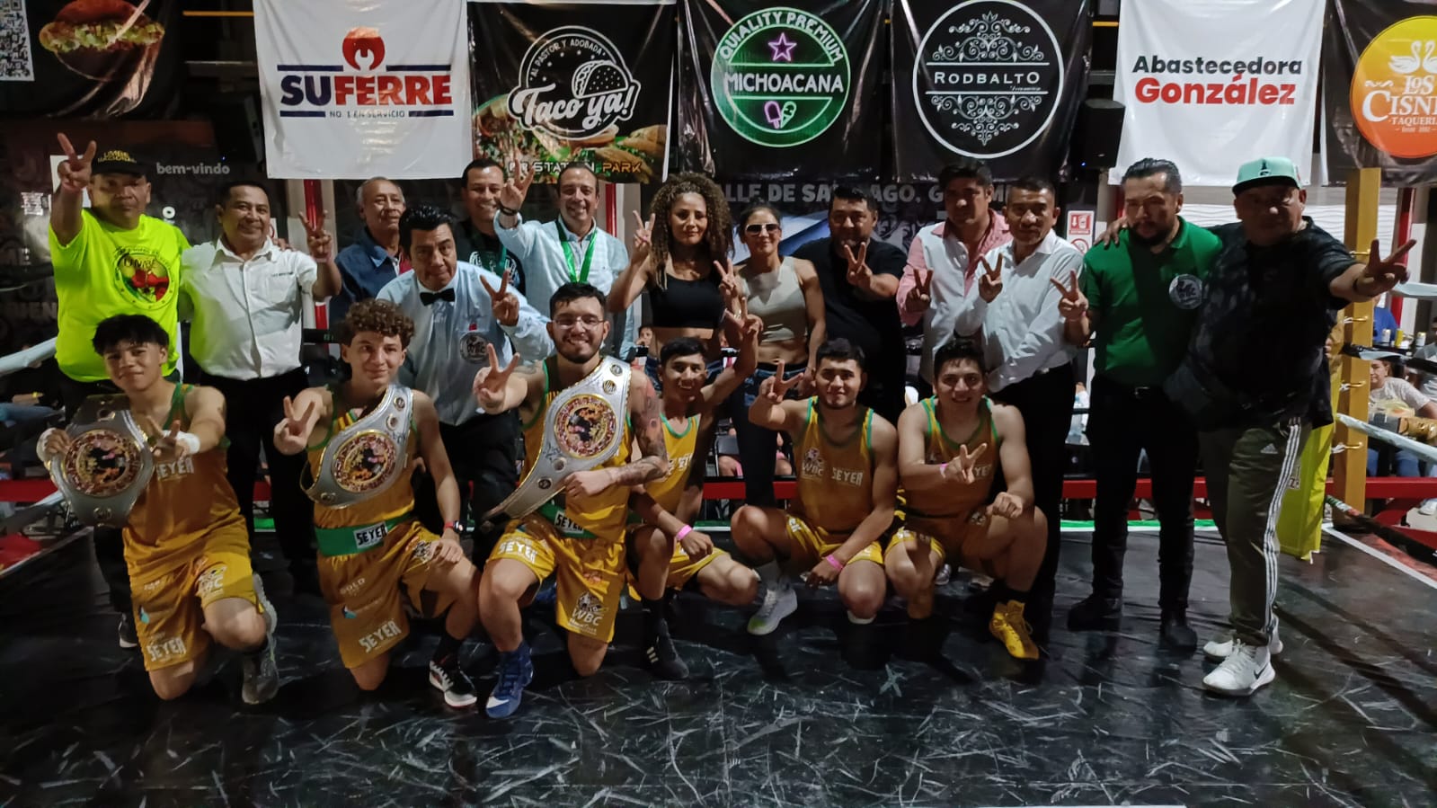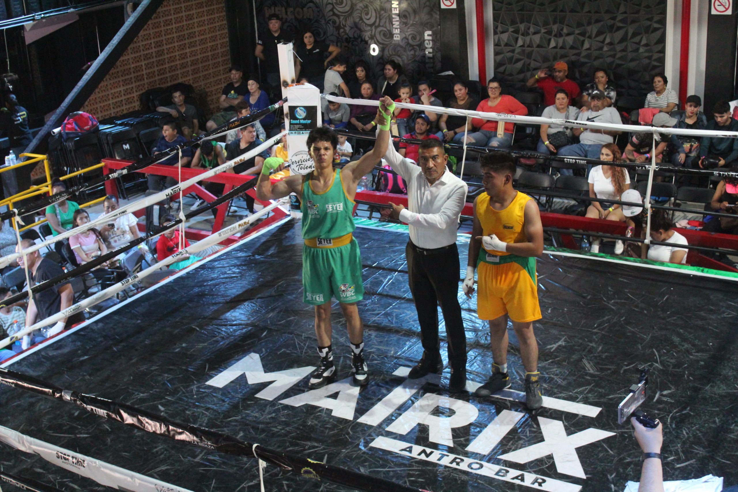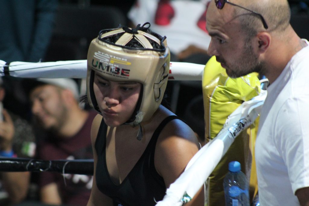 En otro combate Derek Juárez con toda una familia de boxeo, Lourdes Juárez madre, Luis Rodrigo Ramírez padre, Dominick Ramírez Juárez hermano, en su esquina para inyectarle poder a sus puños.