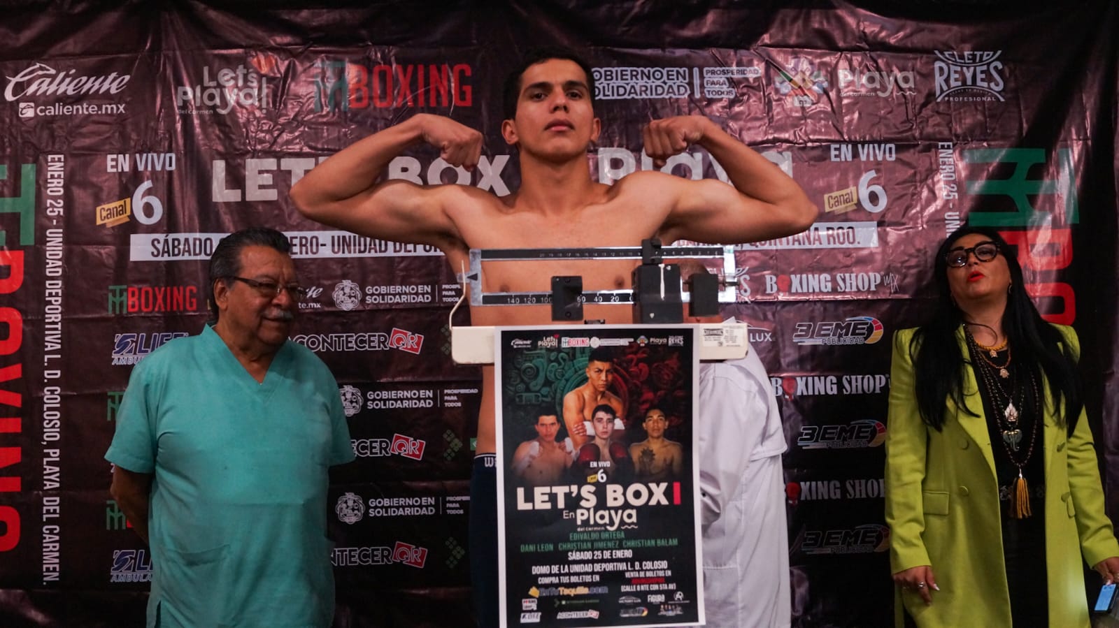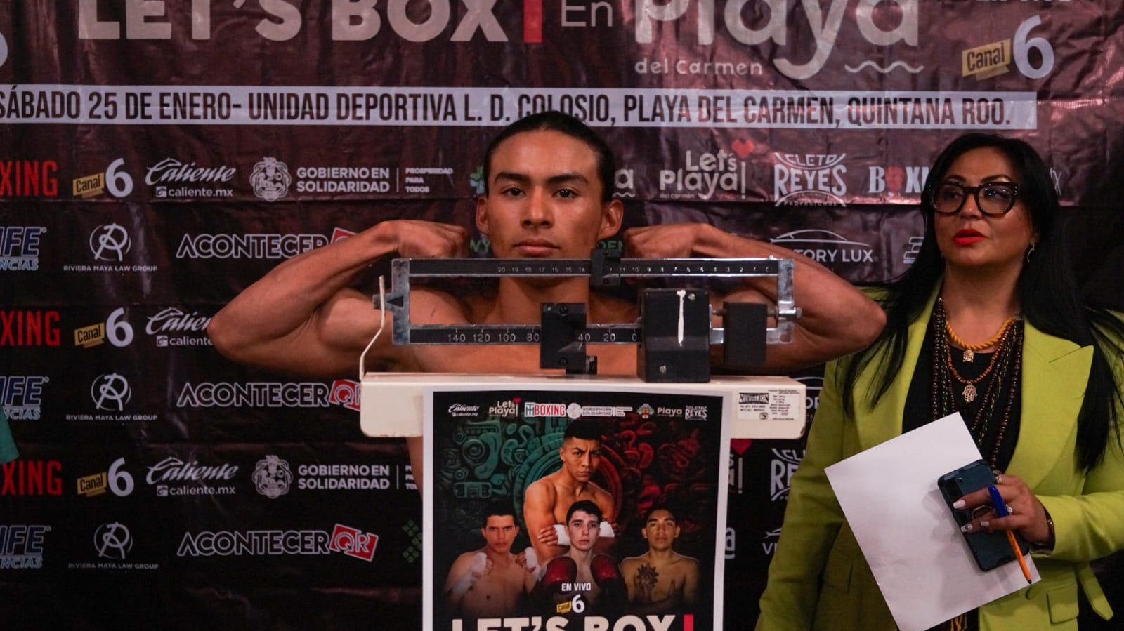 El doctor Mario Abarca, presidente de la comisión de box, lucha libre y artes marciales mixtas de Solidaridad fue quien encabezó el examen médico y la ceremonia oficial del pesaje en el hotel Wyndham Garden de Playa del Carmen, el cual se realizó con saldo blanco y con los pugilistas ansiosos de subir al cuadrilátero.
