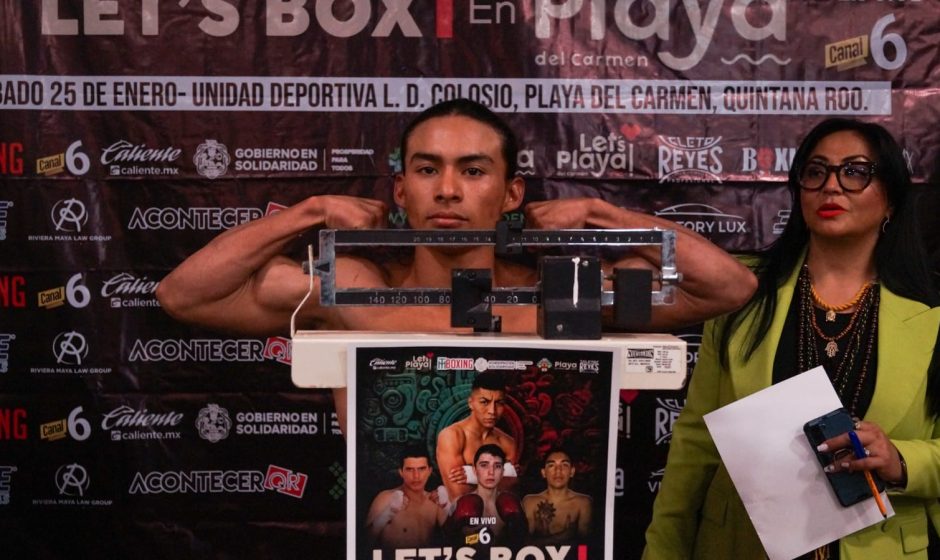 Los protagonistas de la velada “Let’s Box” pasaron la báscula y se declaran listos para deleitar a la afición de Playa del Carmen con una espectacular función gratuita este sábado 24 de enero a partir de las 20:00 horas en el Domo de la Unidad Deportiva Luis Donaldo Colosio y la transmisión por las pantallas de Canal 6, Multimedios Televisión.