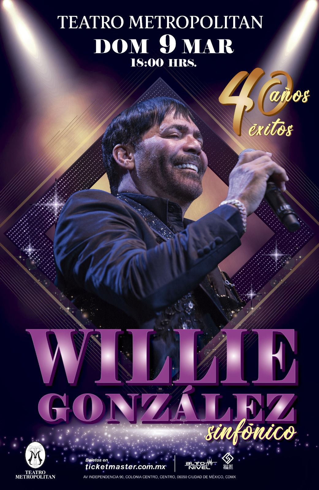 Willie González Celebra 40 Años de Éxitos con Concierto Sinfónico en el Teatro Metropólitan el próximo domingo 9 de marzo de 2025 a las 6pm en el Teatro Metropólitan de la Ciudad de México, que