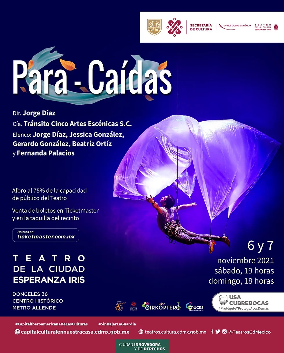 La caída y el riesgo de caer es algo latente en las artes circenses, de tal modo que las similitudes se convierten en metáforas de la caída. El circo desafía a la gravedad, desarrolla una lucha para encontrar el equilibrio, bailar en el aire, con el cuerpo o manipulando objetos, entonces ¿Cómo frenar la caída? ¿Es el circo una especie de paracaídas?